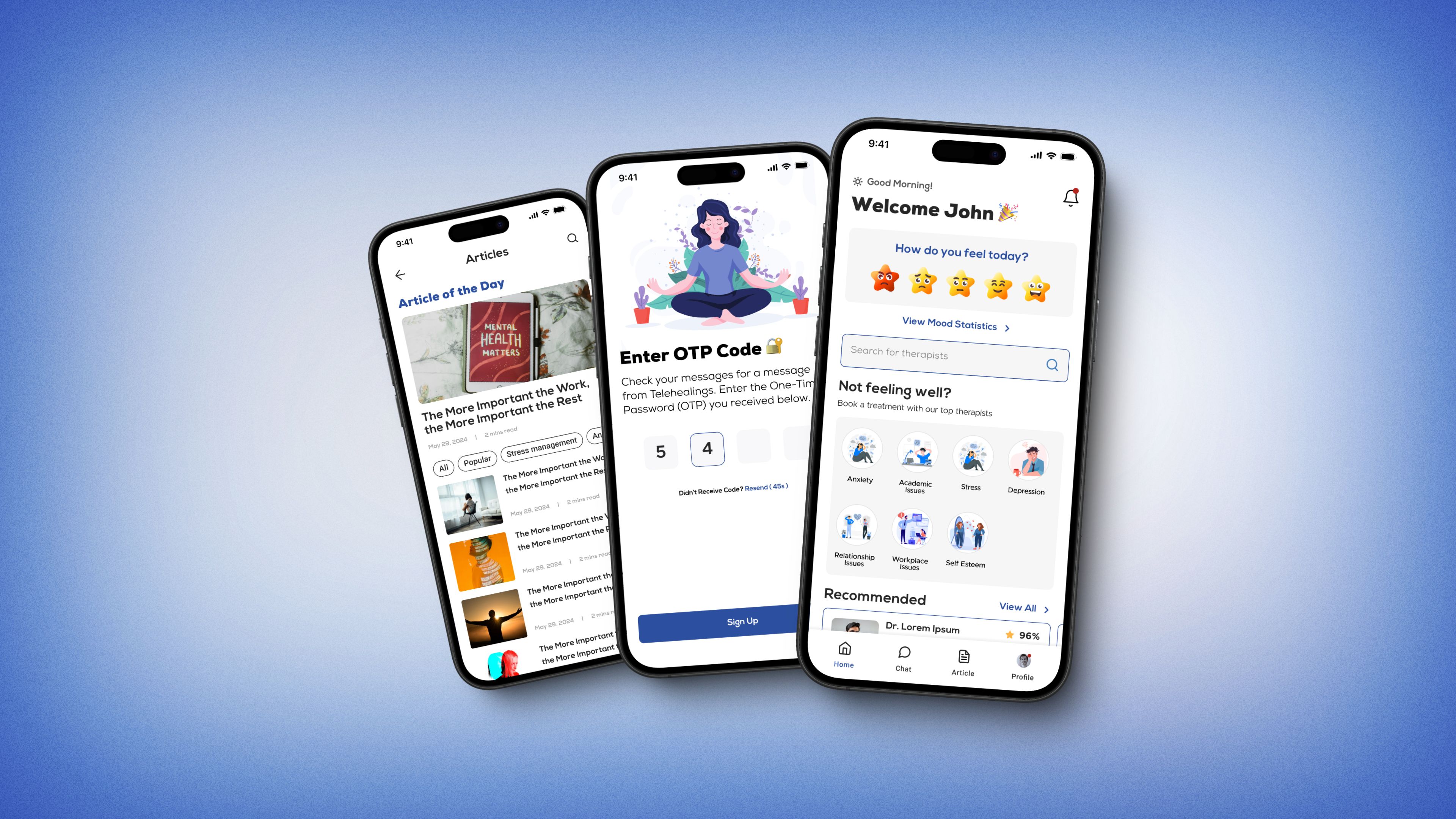 Increased User Retention by 65% with Redesigned TeleHealings App for Mental Health.