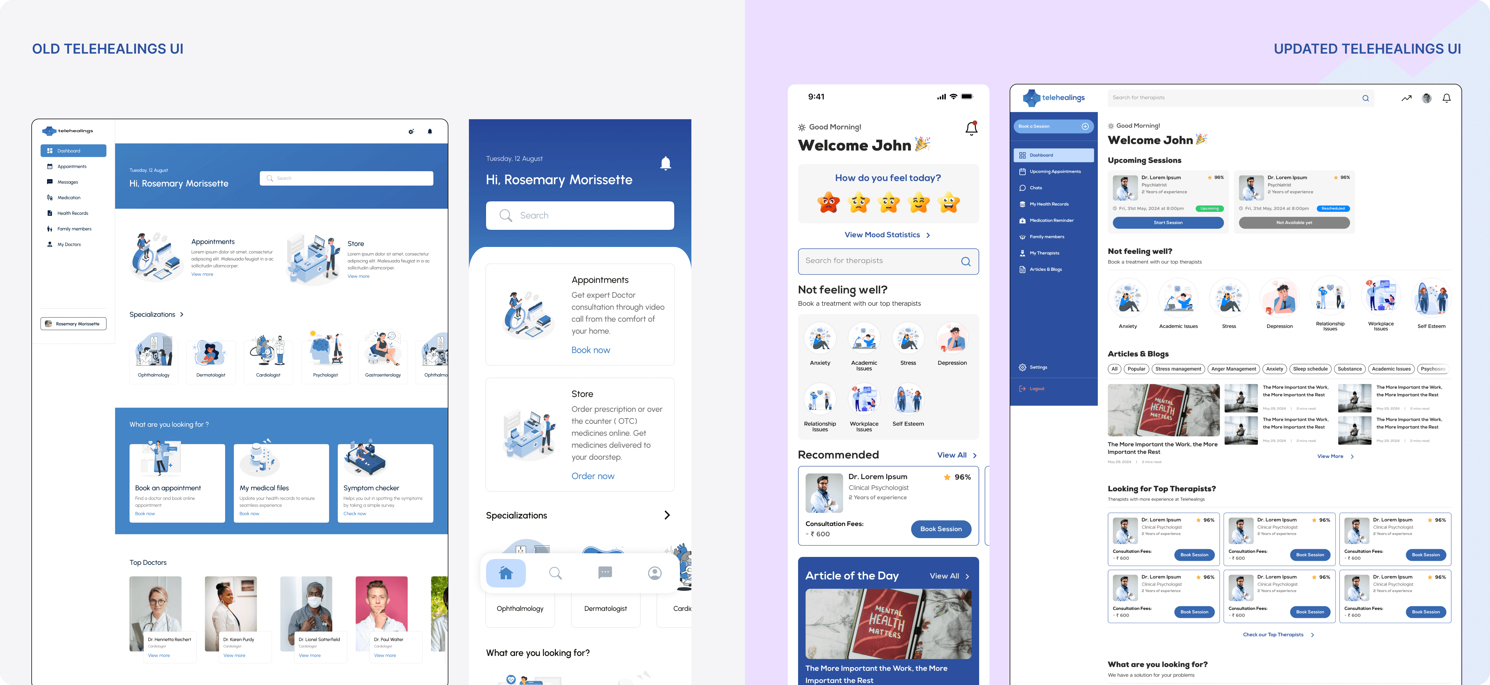 These are the updated UI of Telehealings. Due to privacy concerns the entire UI cannot be showcased. However, these images will give you an overview how the UI have been updated.