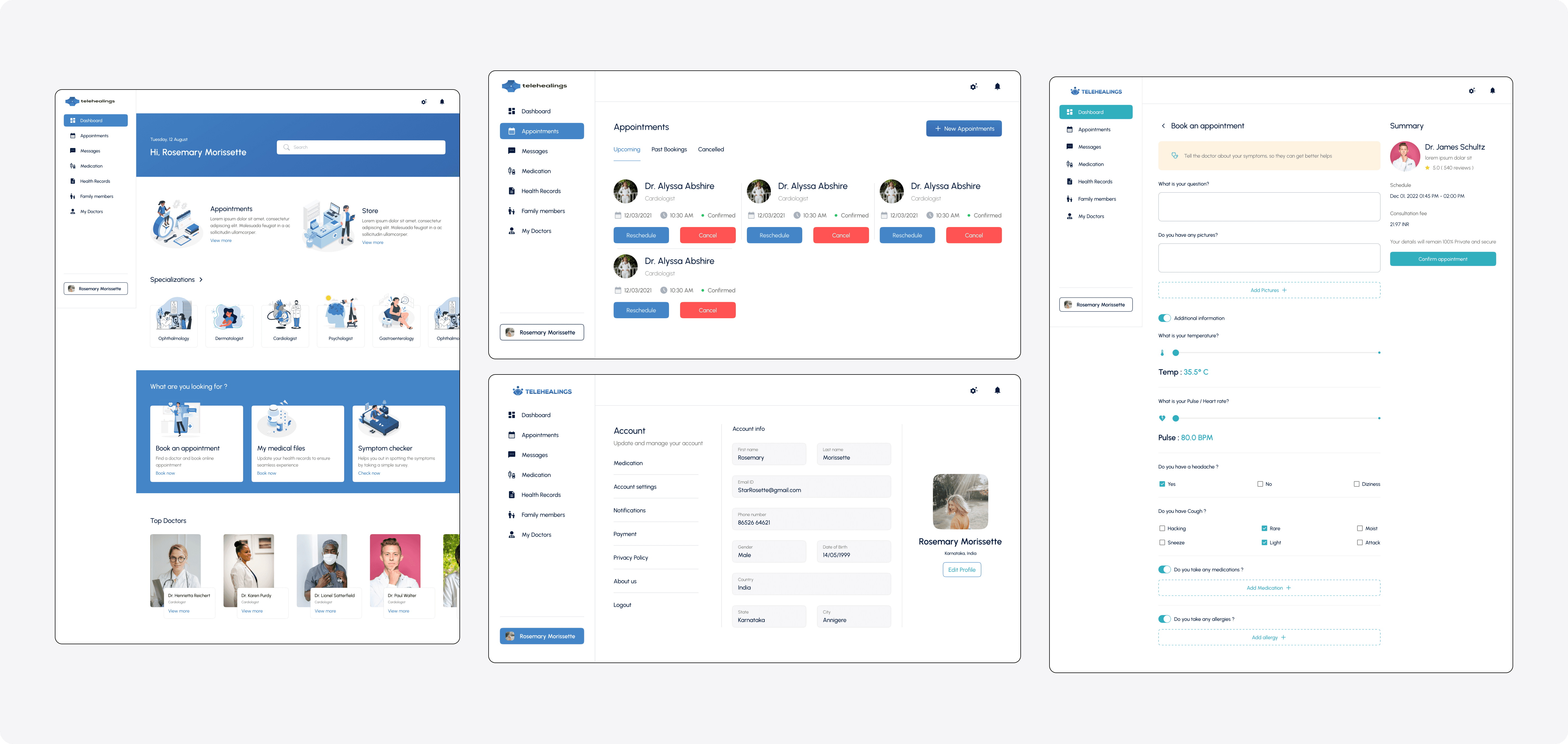 Telehealings had their previous version of the app in the desktop version as well. However, it was not as intuitive and lacked usability. Other than that, it needed to have the same design language as the Telehealings App.